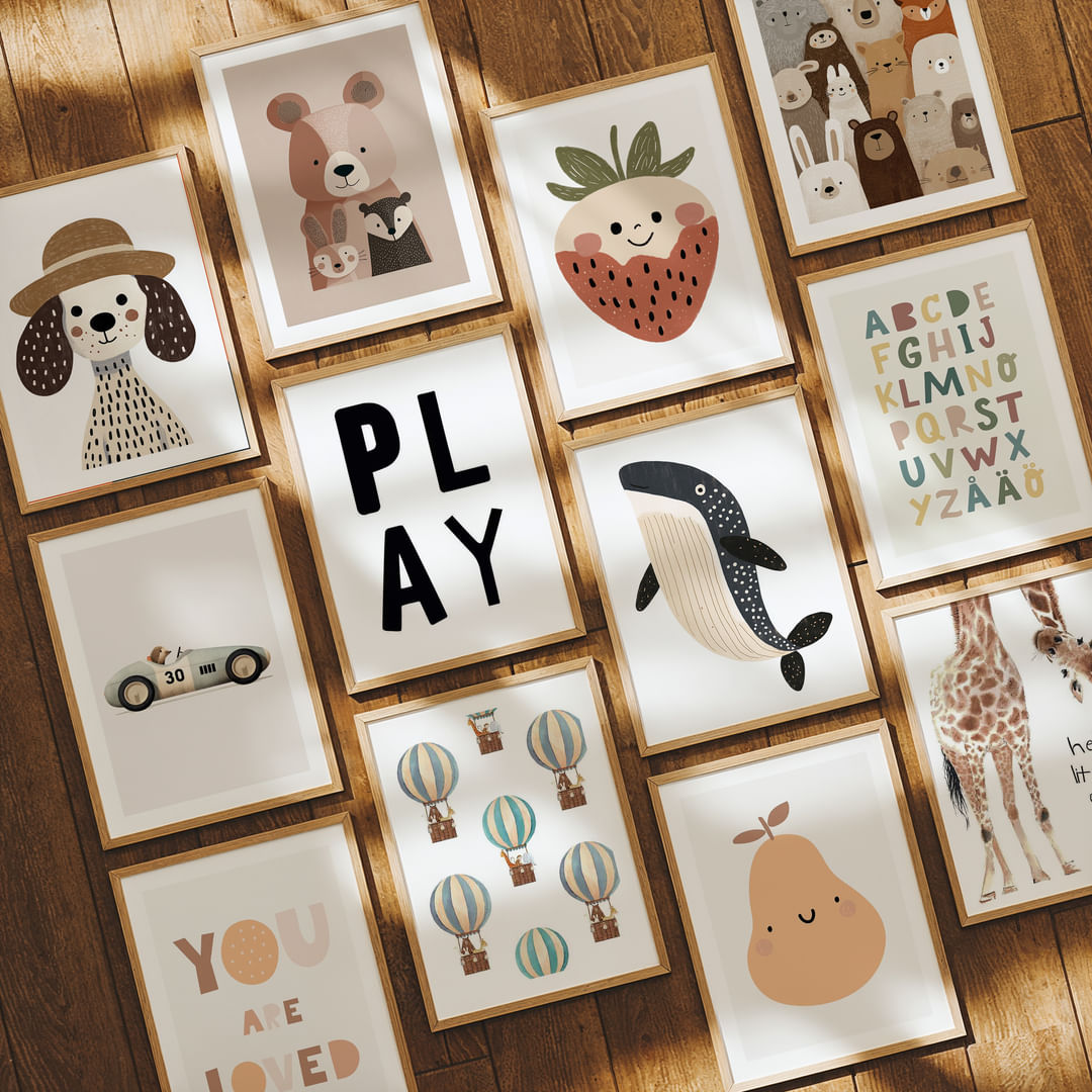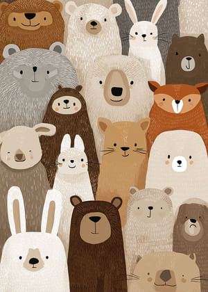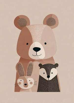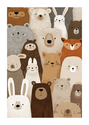 Esta arte de parede reúne elementos lúdicos com animais alegres e natureza estilizada numa interação acolhedora de cores e formas. As pinturas captam uma sensação de brincadeira e curiosidade, onde cada peça conta a sua própria história, ao mesmo tempo que unem o ambiente com leveza e alegria. Perfeitas para criar uma atmosfera vibrante e convidativa, adequada tanto para crianças como para adultos.